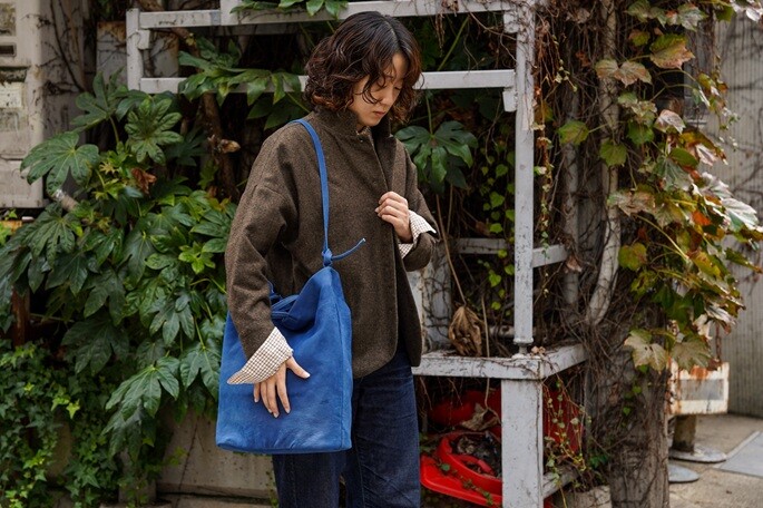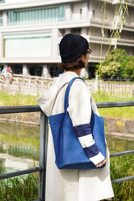 ■藍染め Deer Nubuck-2Way Tote Bag-M (品番:858S85R )