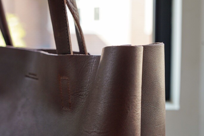 裏地も使うことなくオールレザーで仕上げ、コバ面まで