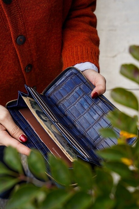 ■ 藍染め Crocodile - Round Long Wallet -(品番SO910R)
