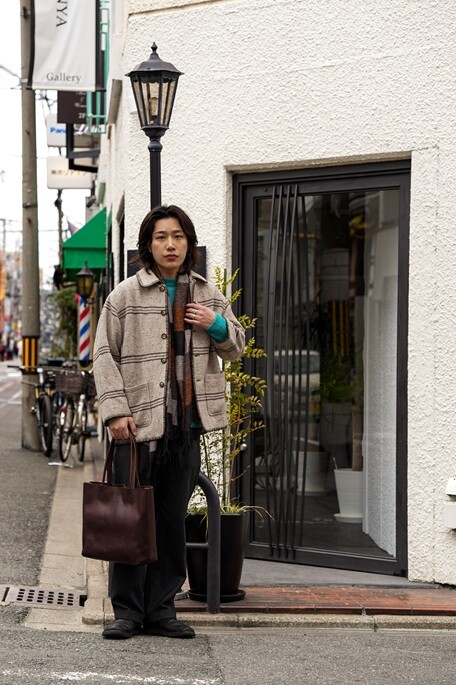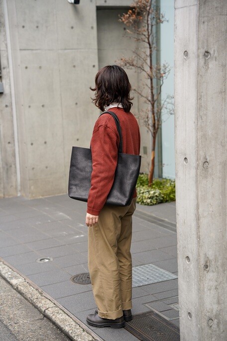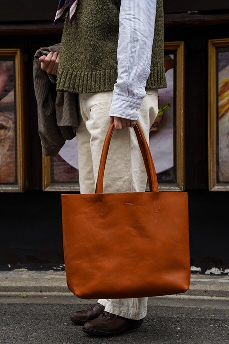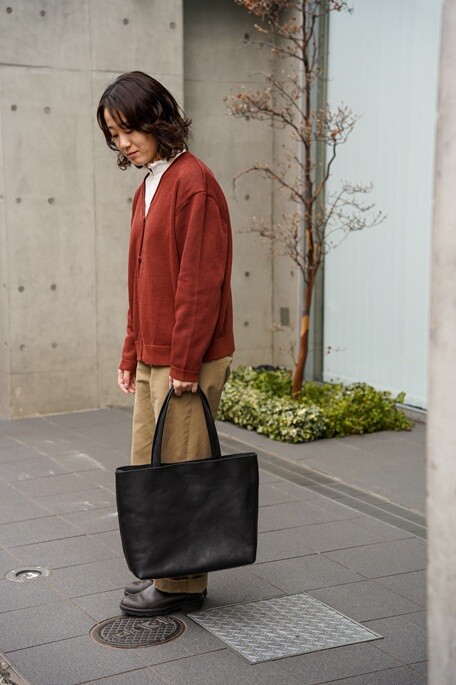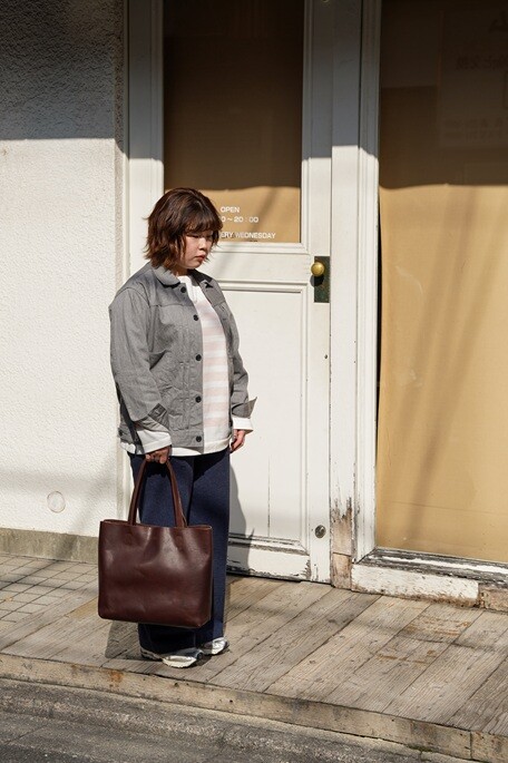 春先に向けたコットンカーディガンやシャツにもこちらのトートバッはマッチしますね。