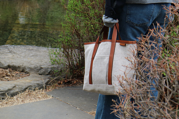 シンプルなデザインだからこそ、どんな装いにも上品に寄り添うトートバッグ。