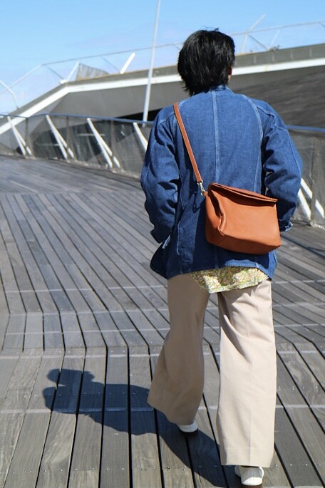 コンパクトなショルダーバッグを合わせることで、コーディネートをすっきりと引き締めてくれます。