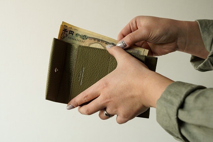 紙幣はジャストサイズで収まり、出し入れもスムーズです。