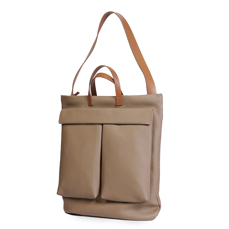 国内の老舗タンナーより1枚1枚丁寧に仕上げた本体のレザーは、地下100メートルからくみ上げた水を鞣しの工程に使用している為、品質を安定させ、きめが細やかで独特な風合いをご堪能頂けます。更に仕上げ工程に24時間ドラムでから打ちする事で、もっちりと滑らかな風合いに仕上げました。